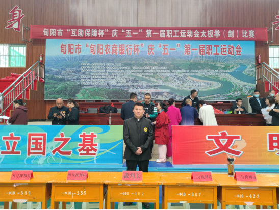 4月28日,应旬阳市总工会、旬阳市教育体育和科技局的邀请,公司副经理郭西魁为旬阳市“互助保障杯”庆“五一”第一届职工运动会太极拳(剑)比赛指导武术裁判工作,并在闭幕式上为获奖团体颁奖。