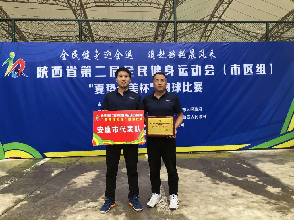 公司崔晓宇、刘晓松两位教师代表安康市参加比赛,比赛中两位老师不畏强手,团结奋进、努力拼搏,最终安康市代表队获得“团体二等奖”。崔晓宇老师被评为“全民健身之星”称号。本次比赛创造了近年来安康市网球项目最好成绩。