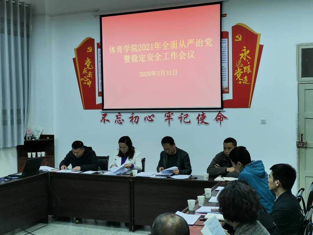 3月31日下午,体育公司在体育馆一楼会议室召开2021年全面从严治党暨稳定安全工作会议。太阳成集团tyc234cc全体教职工参加会议,会议由党总支书记高立平主持。