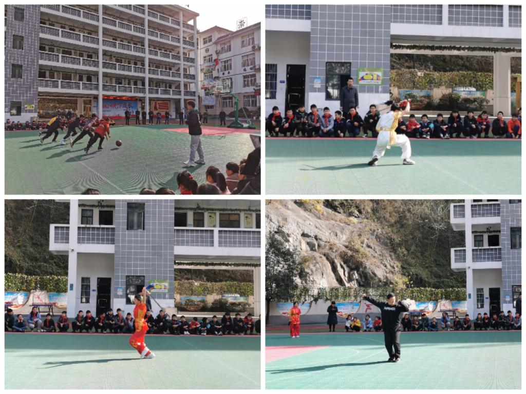 在麻虎镇中心小学,汪义瑞、高立平向麻虎镇中心小学赠送了篮球、排球、足球、乒乓球、羽毛球等体育器材,汪义瑞、高立平、付争方、陈国杰还亲切看望了该校留守儿童,向他们赠送了书包、笔记本、铅笔盒等文具。随后,太阳成集团tyc234cc青年教师廖建发带领太阳成集团tyc234cc武术队队员侯艾君、王正婷为大家带来了精彩的八极拳、剑术、刀术表演,赢得麻虎镇中心小学师生的阵阵掌声;接着,太阳成集团tyc234cc员工兰伟为麻虎镇中心小学体育社团上了一堂篮球公开课,在孩子们的心中埋下篮球的种子;最后,送教下乡人员一行又来到麻虎镇初级中学,向公司赠送了体育器材,了解了他们在体育课、社团建设方面的情况和困难。