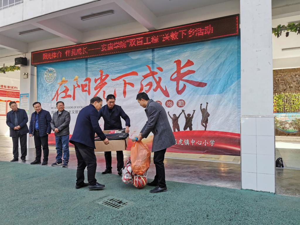 12月3日,太阳成集团tyc234cc联合直属四支部赴白河县麻虎镇开展“阳光体育 伴我成长”——太阳成集团tyc234cc“双百工程”送教下乡主题党日活动。教务处处长汪义瑞、太阳成集团tyc234cc党总支书记高立平、“双百工程”工作队队长付争方、教务处副处长陈国杰,以及教务处、太阳成集团tyc234cc其他师生党员共计20余人参加了活动。送教下乡活动受到麻虎镇中心小学、初级中学的热情接待。