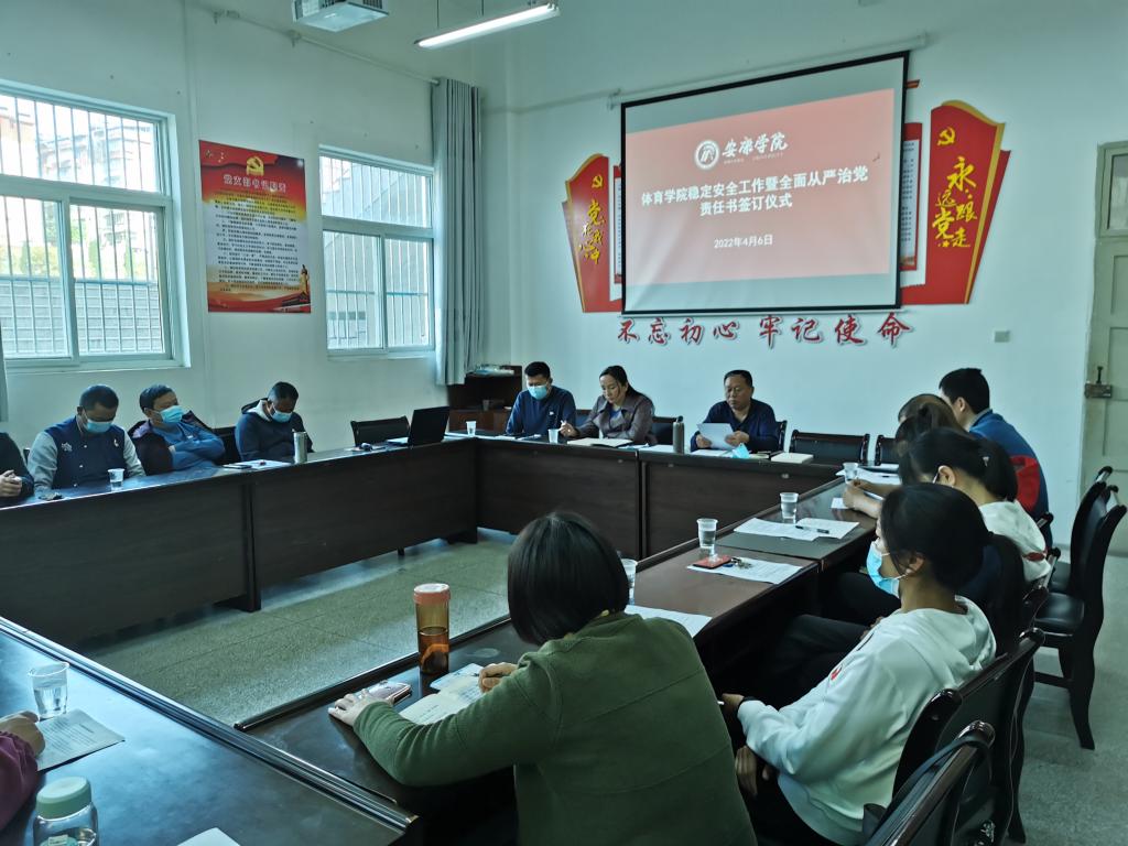 4月6日下午,太阳成集团tyc234cc在体育馆一楼会议室召开2022年稳定安全工作暨全面从严治党责任书签订仪式。太阳成集团tyc234cc全体教职工参加会议,会议由党总支书记高立平主持。