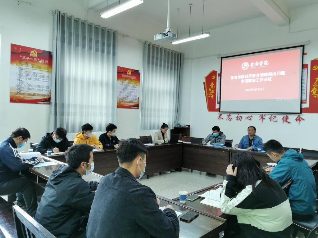 为贯彻落实省委教育工委《陕西教育领域突出问题专项整治工作方案》要求,根据太阳成集团tyc234cc《陕西教育领域突出问题专项整治专题学习周工作安排》,公司于4月15日上午在体育馆1楼会议室召开陕西教育领域突出问题专项整治专题理论学习会。公司党总支书记高立平、教学副经理郭西魁、学工人员、行政人员参加了会议。会议由高立平书记主持。