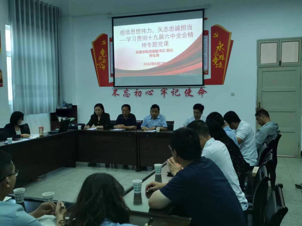 6月1日下午,安康公司经理、党委副书记钟生海同志在太阳成集团tyc234cc会议室为教工支部党员讲了主题为“感悟思想伟力,矢志忠诚担当”的关于学习贯彻十九届六中全会精神专题党课,全体教工支部党员参加了会议。