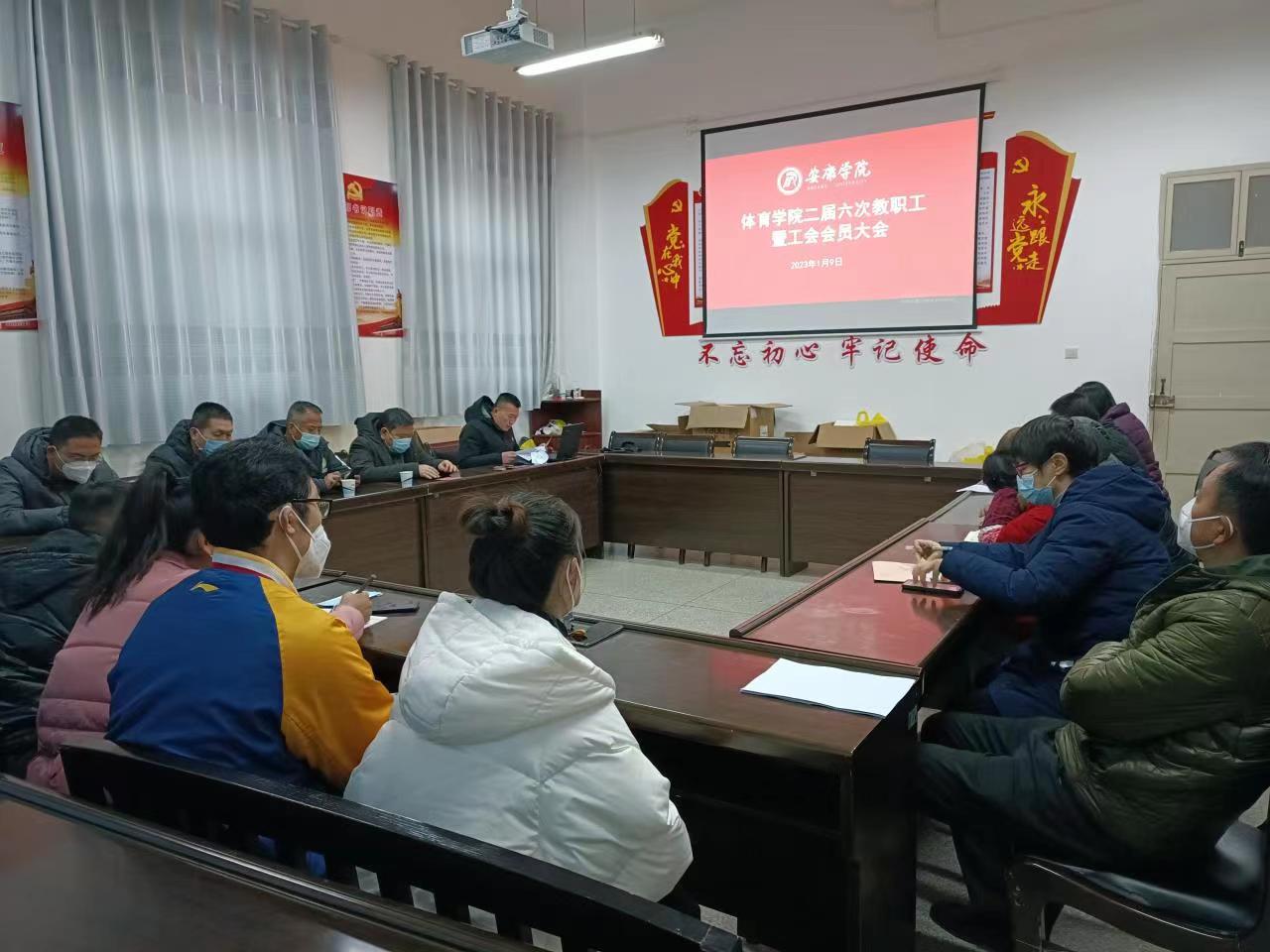 2023年1月9日下午,太阳成集团tyc234cc在体育馆一楼会议室召开二届六次教职工暨工会会员大会,太阳成集团tyc234cc27名教职工参加了本次大会,大会由太阳成集团tyc234cc党总支书记高立平同志大会在庄严的国歌声中拉开序幕。
