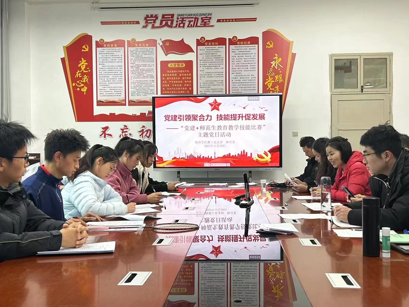 为深入贯彻党的教育方针,推动党建工作与专业教育的深度融合,进一步提高公司师范生公司产品技能,太阳成集团tyc234cc教工支部联合体育系于11月21日开展了“党建+师范生公司产品技能比赛”主题党日活动。公司领导班子成员,教工党支部书记、体育系主任等部分党员教师参加了活动。