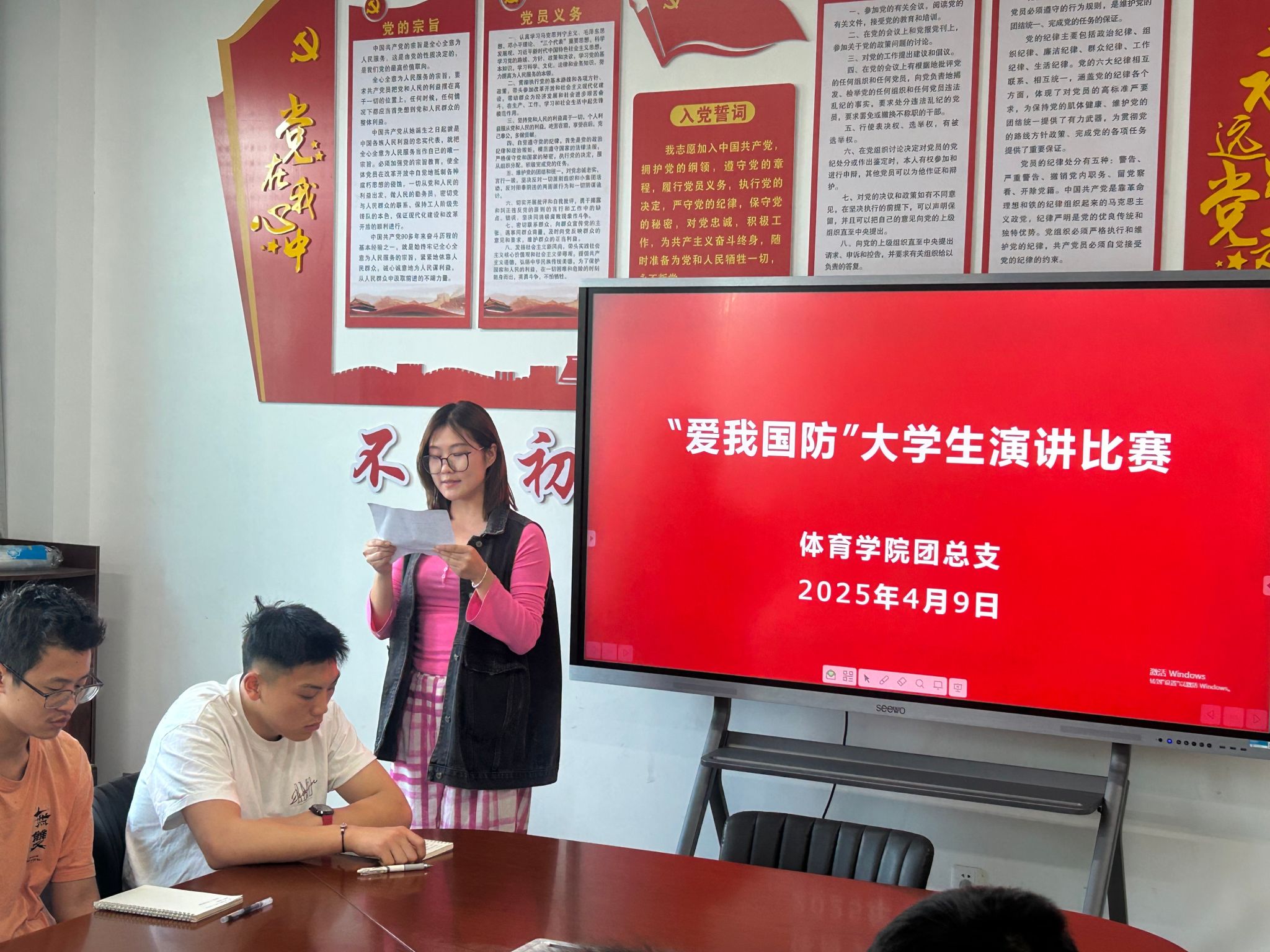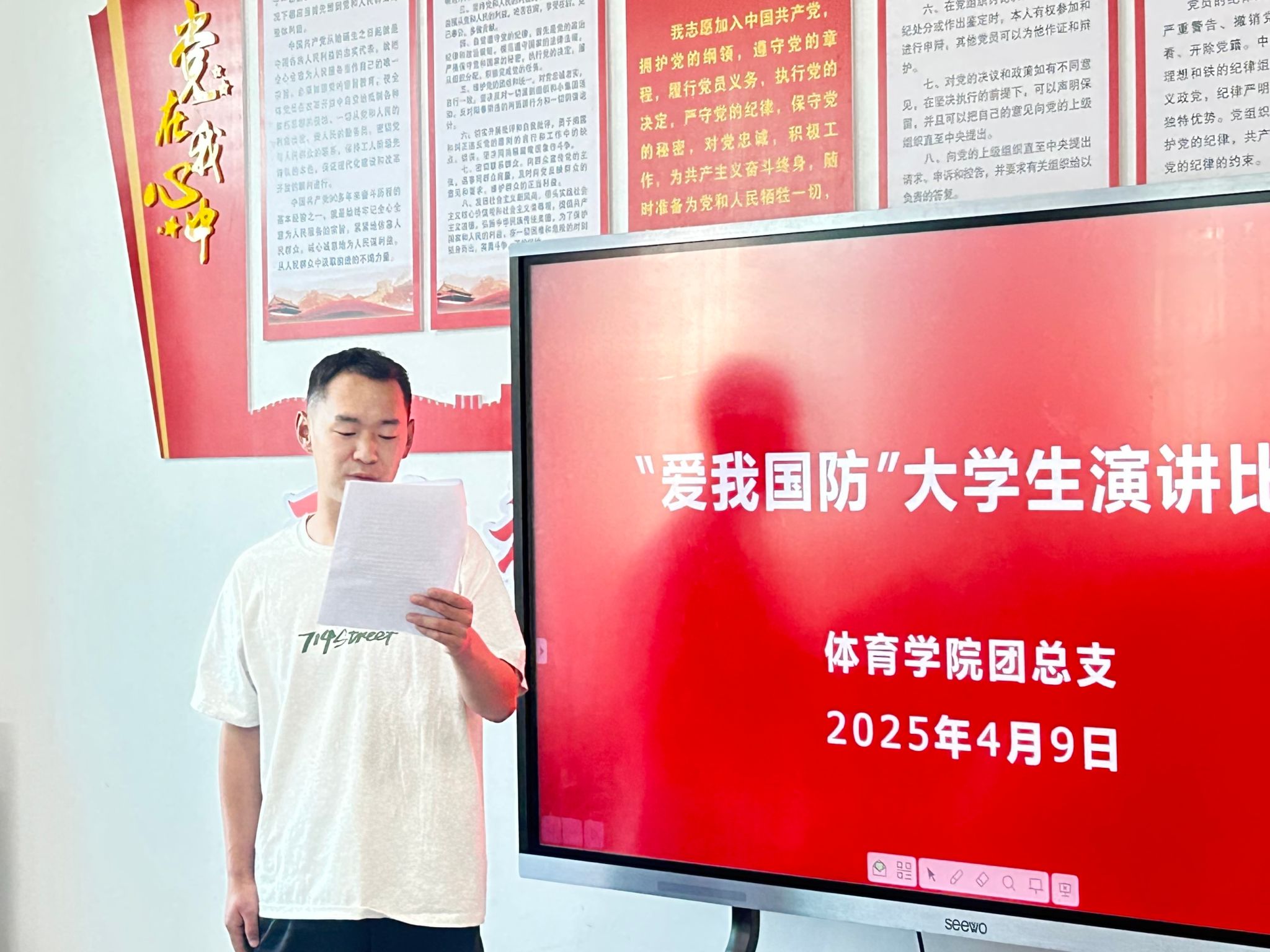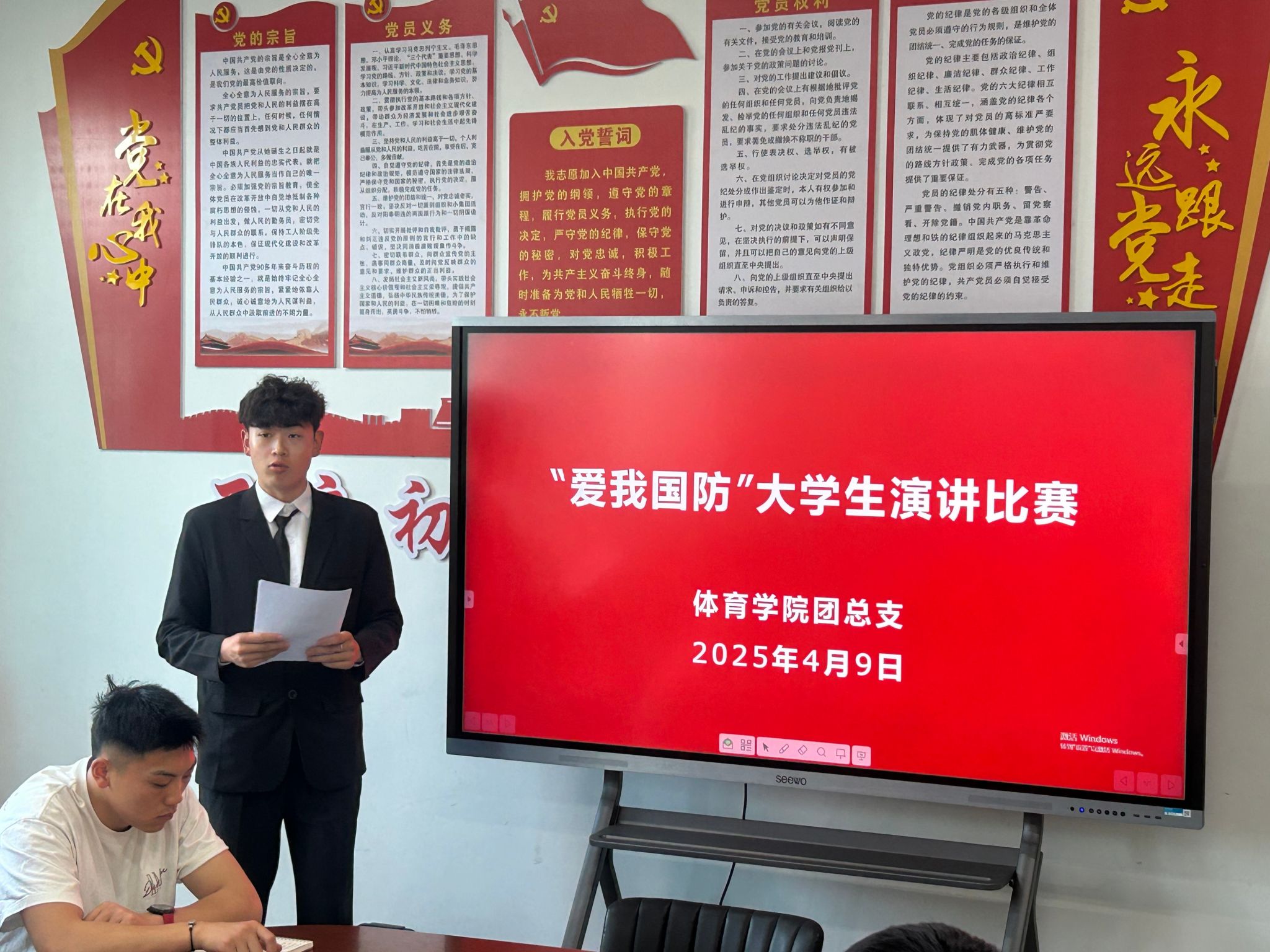 选手们或激昂陈词呼吁居安思危,或娓娓道来分享红色故事,通过鲜活案例、深情告白,生动诠释了“天下虽安,忘战必危” 的深刻内涵。“当我在训练场摸爬滚打时,迷彩服上的汗水就是青春献给国防的勋章!”体育教育专业2023级退伍员工闫硕以亲身经历讲述《迷彩青春里的强军梦》,用朴实话语还原军营淬炼历程,引发全场共鸣;2022级邢东妮以《青春不止诗与远方,还有铁与火的担当》为题,结合专业特色提出将体育精神与国防责任有机结合,展现新时代体院学子的独特视角。