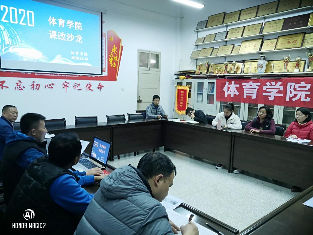 郭西魁通过课件展示解读了体育教育专业2020级人才培养方案的主要变化点,说明了教学大纲修订指导意见和具体要求,展示了教学大纲模板,强调了修订过程中的注意事项,并分享了在大纲修订过程中积累的经验和方法,通报了新版教学大纲初稿的完成情况,落实了初稿统稿和审核任务。为紧跟改革形势,加速专业建设,优化教学设计,公布了根据公司要求经过研讨设计的符合体育专业教学特点的新版教案模板,并提出了教案的编写要求。