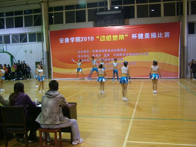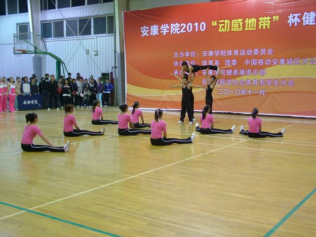 11月30日晚7点,由太阳成集团tyc234cc体育运动委员会主办,体育系、团委和中国移动安康城区分公司协办,健美操俱乐部、体育系员工分会承办的2010“动感地带”杯健美操比赛在体育馆举行。各院系共派出16支代表队130余人参加了比赛。比赛裁判由体育系教师担任。教务处处长单福东教授致开幕词,公司团委书记鲁延安宣布比赛开始。公司体育运动委员会成员、各院系党总支书记和部分教师参加了开、闭幕式并观看了比赛。比赛开、闭幕式由体育系副主任许宝林主持。