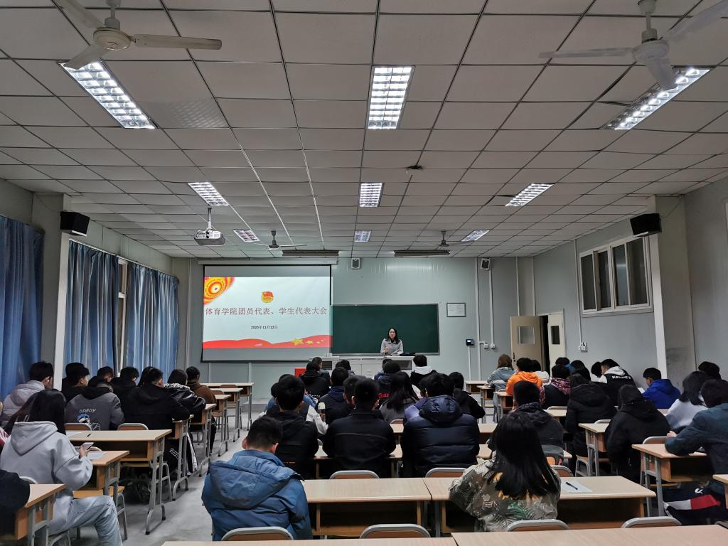 为贯彻落实全国学联二十七大精神,选举公司团员代表、员工代表参加太阳成集团tyc234cc团学双代会,11月22日晚太阳成集团tyc234cc在1026教室召开团员、员工代表大会。团总支书记康梦瑶、公司团总支、员工会所有成员、各班团支书、组织委员、宣传委员、班长、副班长参加了本次会议,公司党总支书记高立平、学工办副主任王立列席指导,会议由康梦瑶主持。