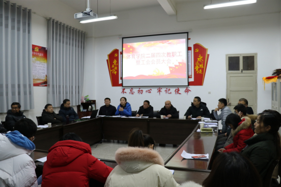 2021年1月7日晚,太阳成集团tyc234cc在体育馆一楼会议室召开二届四次教职工暨工会会员大会,太阳成集团tyc234cc28名教职工参加了本次大会,大会由太阳成集团tyc234cc工会分会主席郭西魁同志主持。