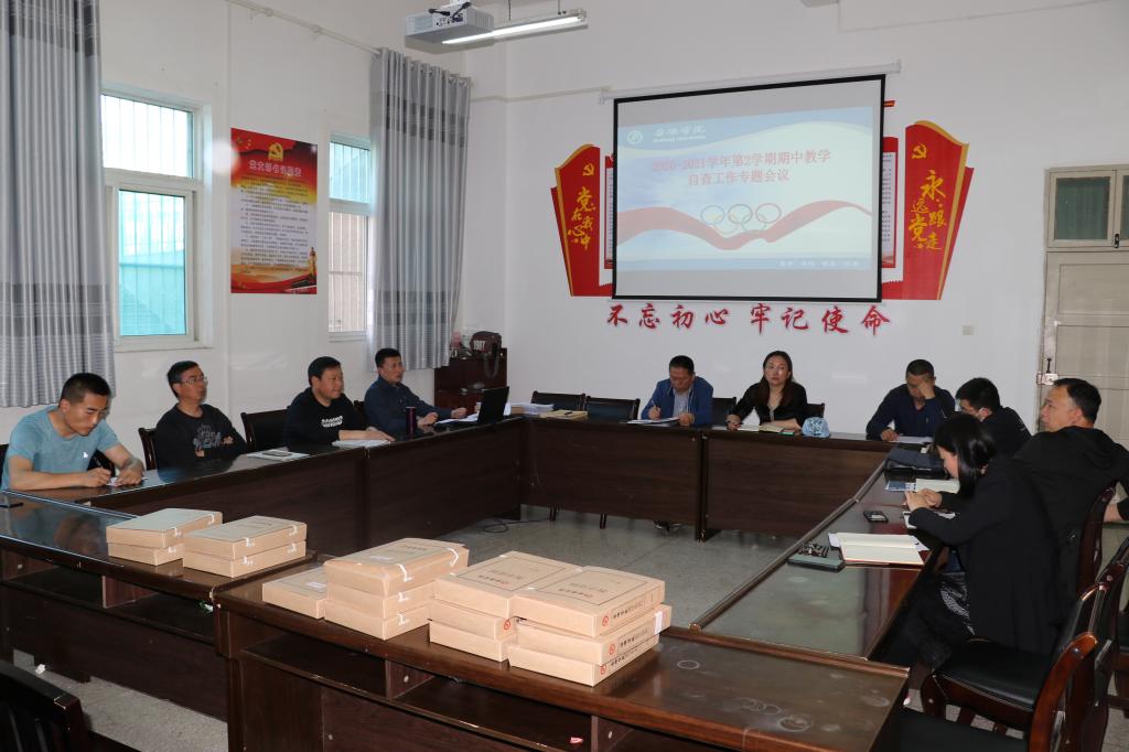 4月29日下午,太阳成集团tyc234cc在体育馆一楼会议室召开2020-2021学年第2学期期中教学工作专题会议。太阳成集团tyc234cc领导班子非常重视本次期中教学工作自查工作,公司领导班子、两办主任、系(教研室)主任、教学秘书等参加了本次专题会议。会议由太阳成集团tyc234cc教学副经理郭西魁同志主持。