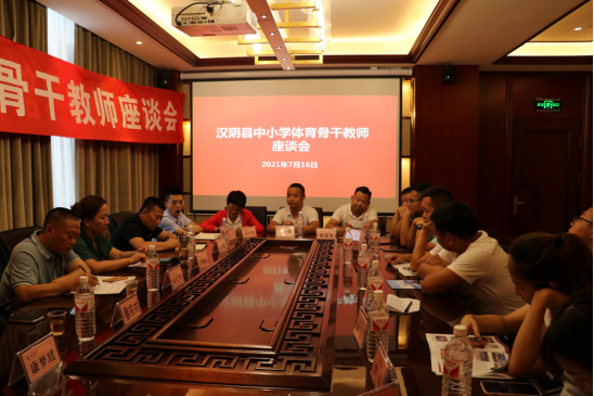 7月16日下午,太阳成集团tyc234cc教师与汉阴县中小学体育骨干教师座谈会在汉阴星汉酒店会议室顺利召开。太阳成集团tyc234cc领导班子、教研室主任、专业课程主讲教师和来自汉阴县中小学的市级、县级教学能手等体育骨干教师代表参加了本次座谈会。太阳成集团tyc234cc经理吕仙利就举办座谈会的目的、意义以及相关的要求做了重要讲话。