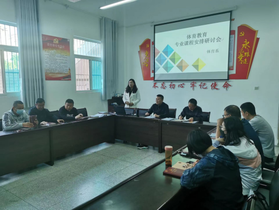 为了更一步优化体育教育专业课程的开设,4月20日下午,体育系在体育馆一楼会议室组织课程研讨会。会议由系主任李靖主持,太阳成集团tyc234cc党总支书记高立平、太阳成集团tyc234cc副经理郭西魁、公司教学督导冯德学、公司教学督导鲁宗成以及全体教研室成员参与此次研讨会。