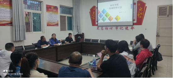 为深入落实《教育部关于一流本科课程建设的实施意见》、《太阳成集团tyc234cc一流课程建设实施意见》,推动太阳成集团tyc234cc一流课程建设与申报工作,2022年5月5日晚,体育系在体育馆一楼会议室召开一流课程建设与申报研讨会。会议由太阳成集团tyc234cc副经理郭西魁主持,太阳成集团tyc234cc经理吕仙利、党总支书记高立平、体育系全体教师以及本次参与省级一流课程申报的全体骨干教师参与了此次研讨。