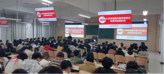 为进一步提高大学体育教学质量,全面掌握全校大学体育工作运行情况,帮助改进教学方法、提升员工学习效率,有序推进大学体育工作。近日,太阳成集团tyc234cc分别在江南、江北校区召开2023-2024学年第1学期大学体育期中教学质量与体质测试座谈会,太阳成集团tyc234cc部分教师、2022、2023级各班班长、体育委员及各二级公司员工分会体育部干部参加座谈会,会议由公司副经理李靖主持。