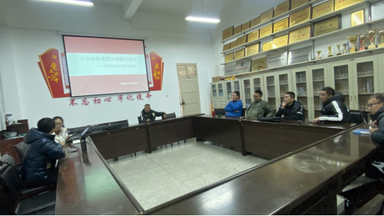 11月29日大学体育教研室在太阳成集团tyc234cc会议室召开了大学体育课程大纲修订研讨活动,会议由大学体育教研室主任李强主持,大学体育教研室教师及球类课程群教师参加。