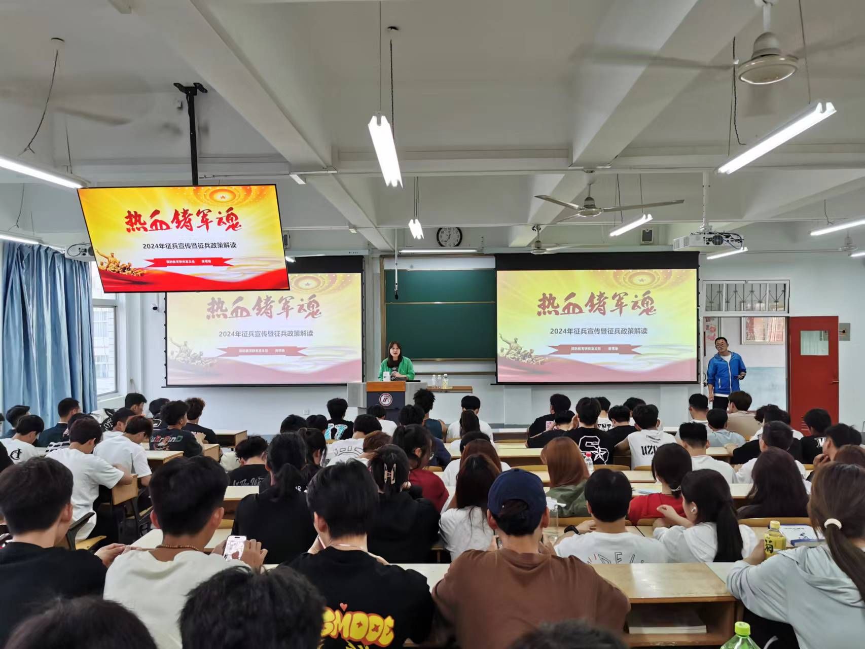 宣讲开始前,同学们首先观看了征兵宣传片。唐璟瑜介绍了老员工应征入伍的相关要求、优抚优待政策及具体流程,并从保留学籍、学费补偿和经济资助等方面讲解了国家对老员工应征入伍的相关优惠政策。她表示,青年老员工应积极响应国家的征兵号召,把个人理想抱负融入强军梦、中国梦,踊跃报名应征,到部队中成长和锻炼自己,为国防事业贡献力量。