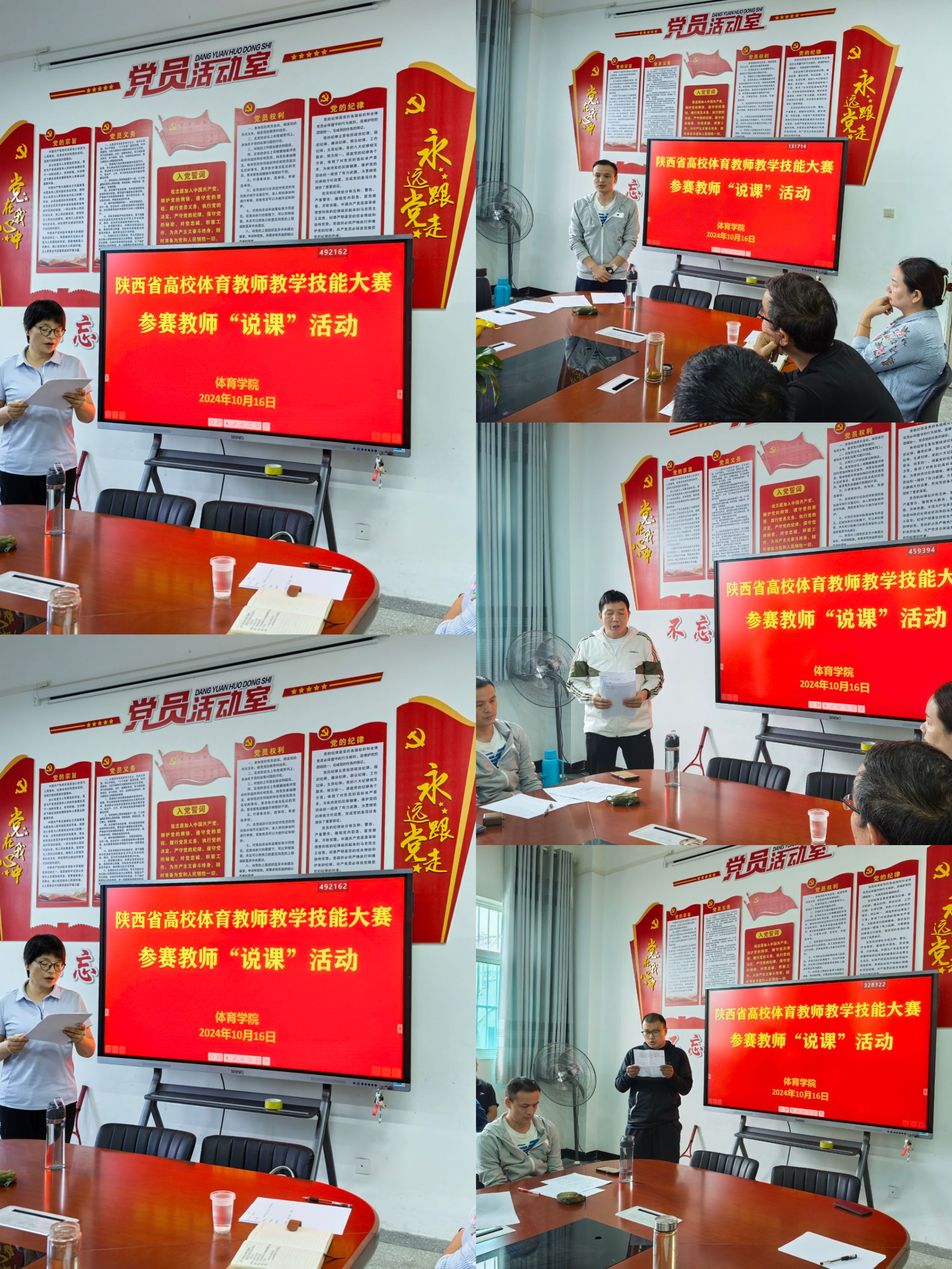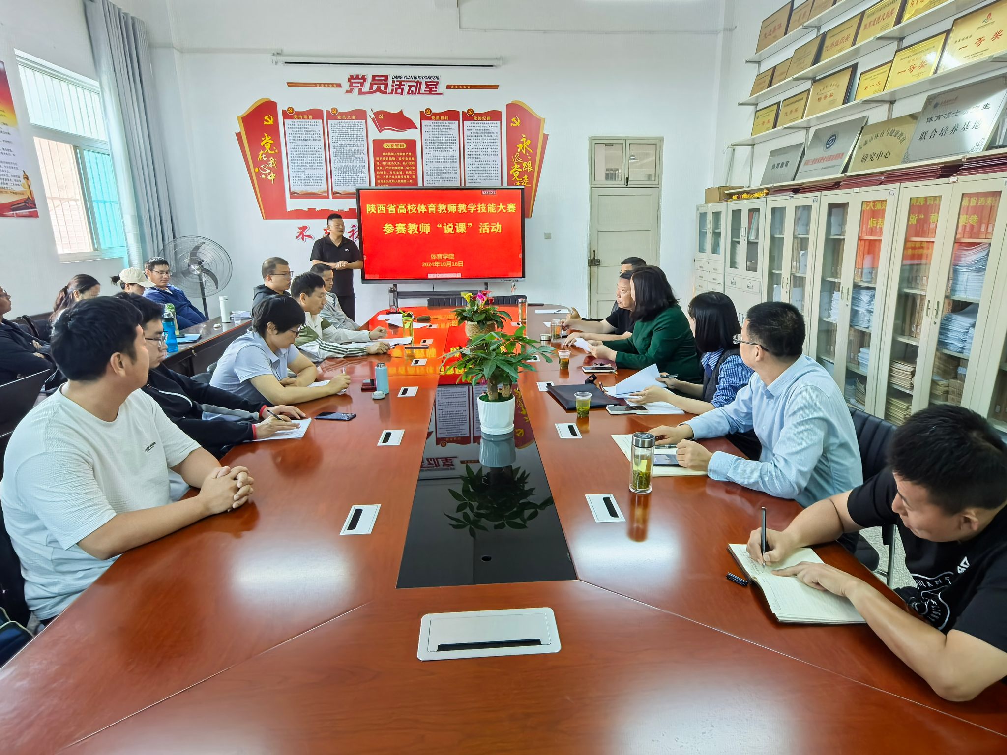 10月16日下午,太阳成集团tyc234cc为备战陕西省高校体育教师教学技能大赛,特举办“说课”磨课活动。活动邀请了文学与传媒公司的邸玲老师及太阳成集团tyc234cc吕仙利、冯德学、鲁宗成、李靖等多位专家进行现场指导。