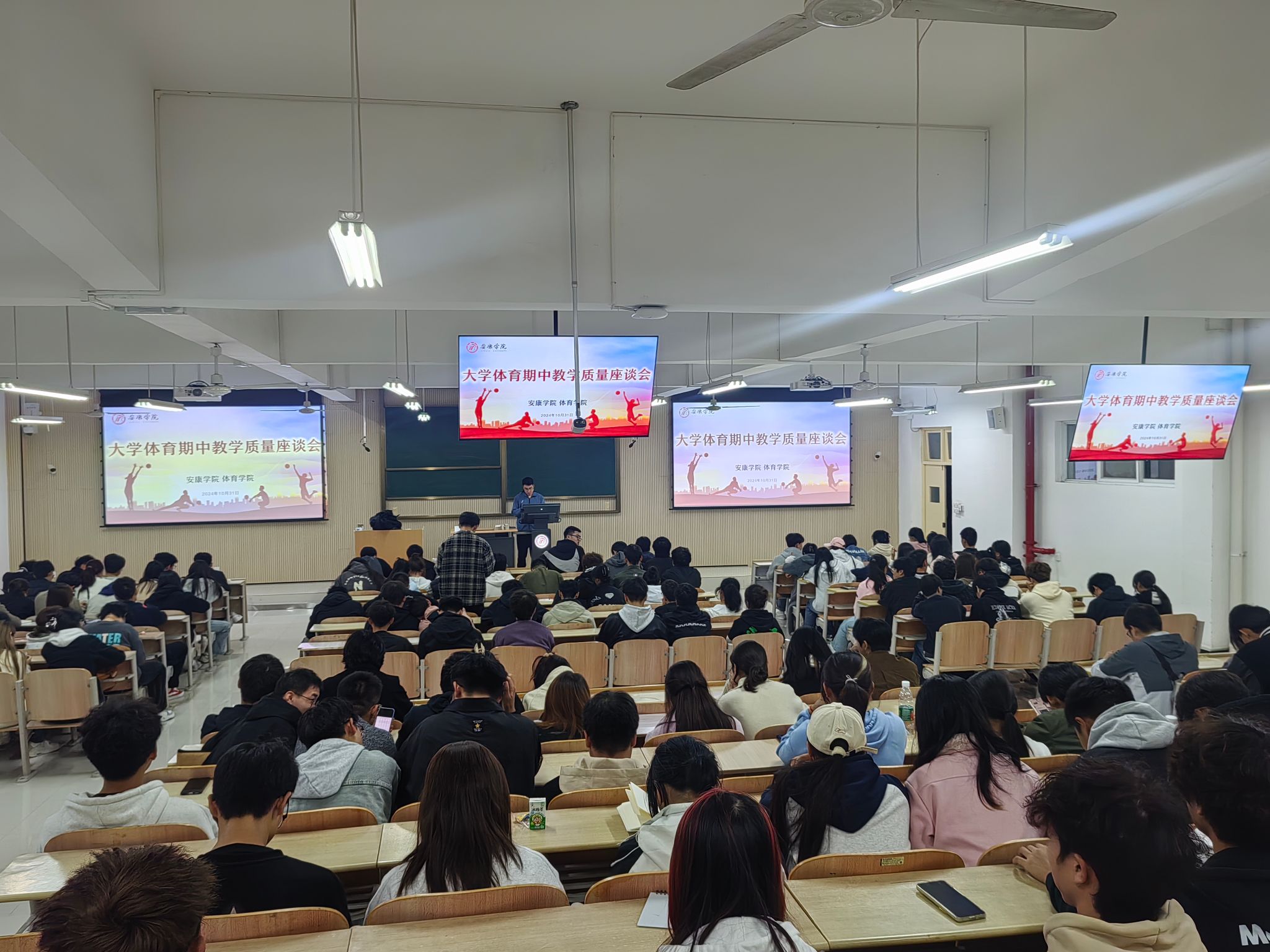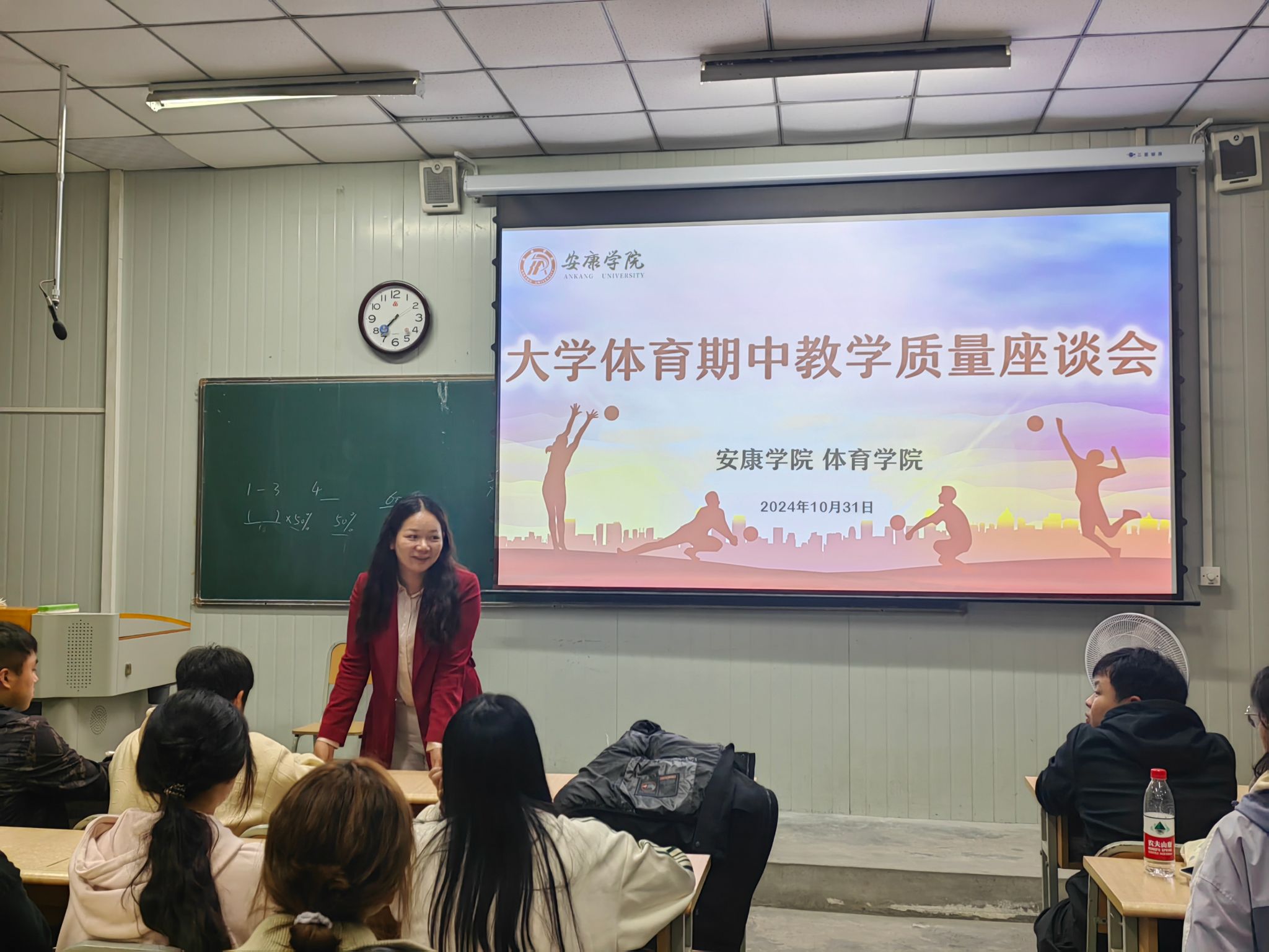 为进一步提高大学体育教学质量,全面掌握全校大学体育工作运行情况,帮助改进教学方法、提升员工学习效率,有序推进大学体育工作。2024年10月31日和11月1日,太阳成集团tyc234cc分别在江南、江北校区召开2024-2025学年第1学期大学体育期中教学质量座谈会,太阳成集团tyc234cc副经理李靖、太阳成集团tyc234cc教学办主任赵娇艳、大学体育教研室副主任王俊杰及各二级公司员工会体育部干部、2023级、2024级各班班长、体育委员等员工代表参加座谈会。会议由大学体育教研室副主任王俊杰主持。