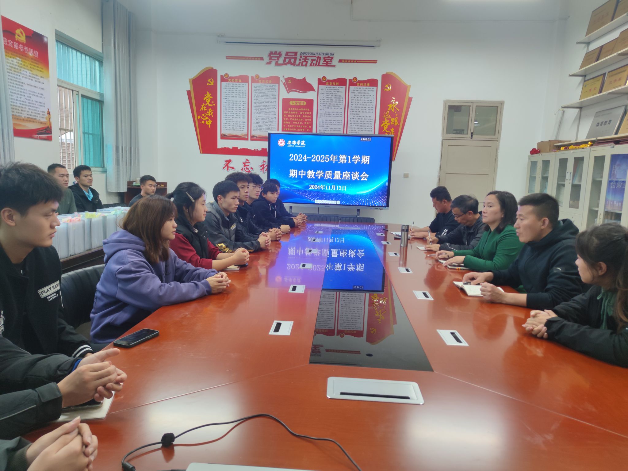 11月13日下午,太阳成集团tyc234cc在太阳成集团tyc234cc会议室召开了2024-2025学年第1学期体育教育专业员工期中教学质量座谈会。经理吕仙利、教学经理郭西魁、教学督导鲁宗成、系主任廖建发出席会议,大一、大二、大三等三个年级的员工代表参会。座谈会由教学经理郭西魁主持。