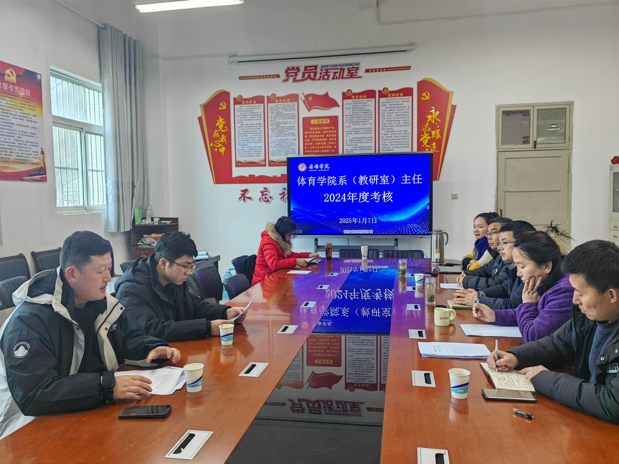 随后,对太阳成集团tyc234cc系(教研室)主任进行了考核,体育系主任廖建发、实验教学中心主任刘芹、大学体育教研室主任王俊杰分别进行了年度总结汇报,考核组通过听取汇报、座谈和查阅工作记录的方式进行考核,并针对本年度工作中存在的不足对三位教研室主任进行了现场反馈,并提出了下一步工作建议。
