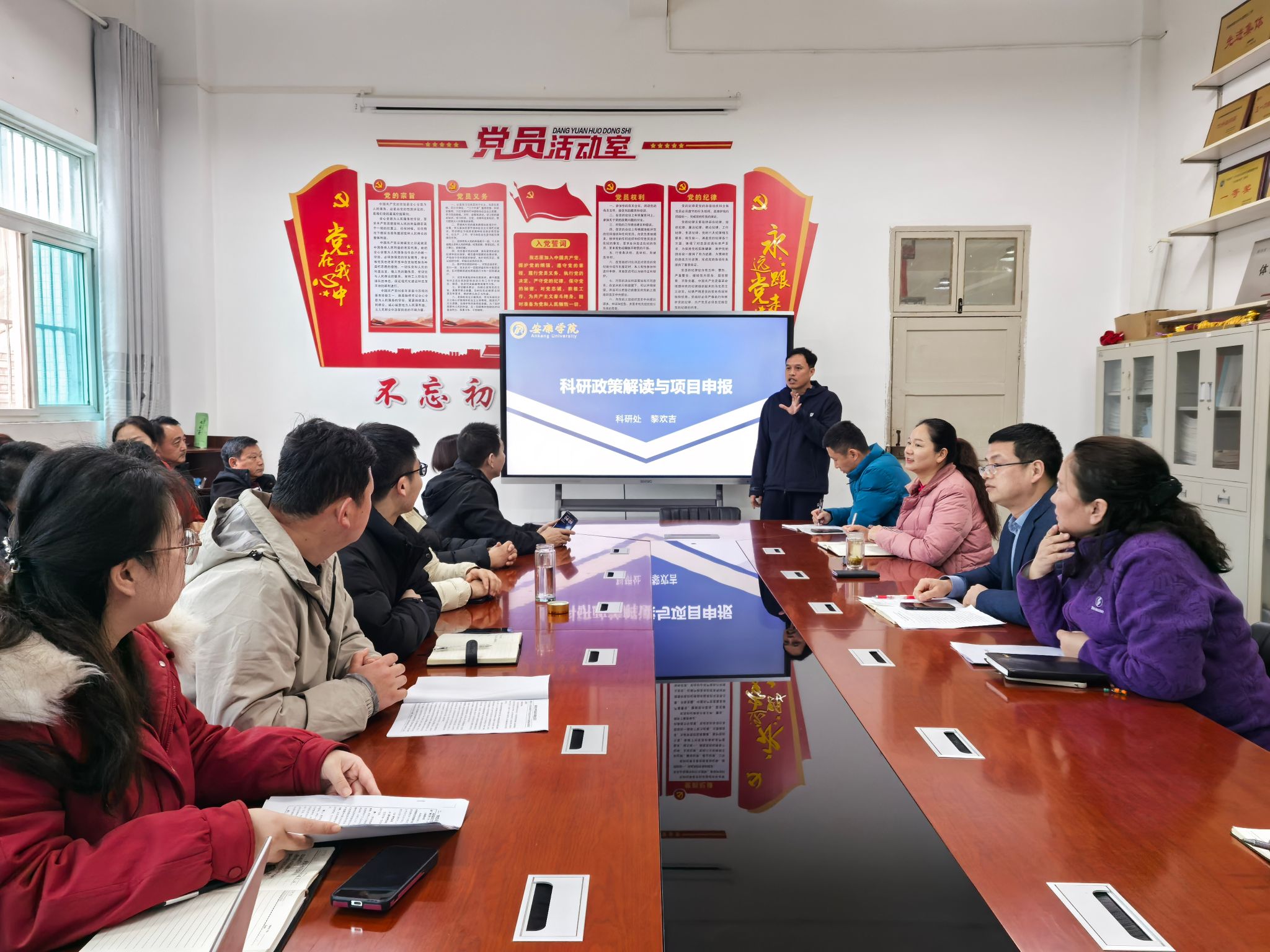 为提升公司科研水平,助力教师科研项目申报工作,3月12日,太阳成集团tyc234cc特邀科研处副处长黎欢吉老师莅临指导,成功举办科研政策解析及项目申报培训活动,太阳成集团tyc234cc全体教师参加了此次培训。此次培训旨在通过科研管理部门的权威解读,为教师提供精准的政策指引和申报策略,助力公司科研工作高质量发展。