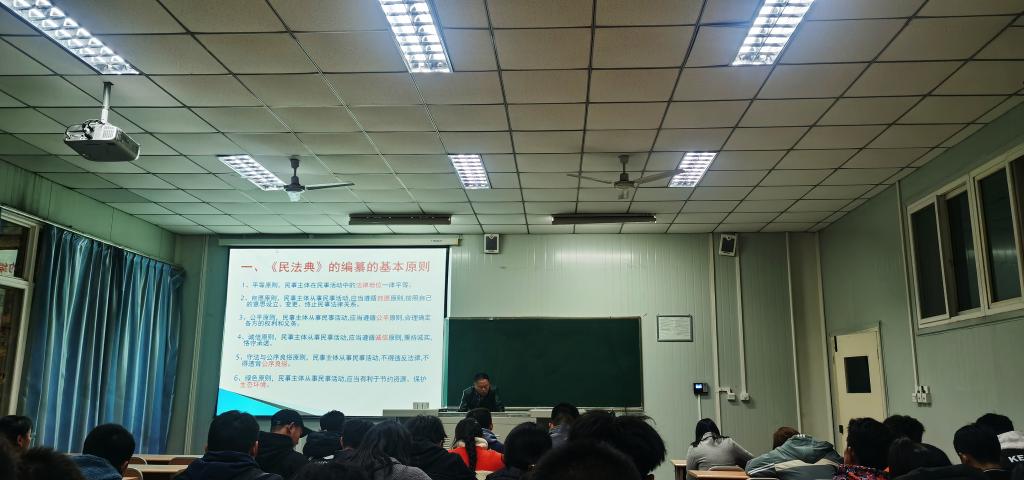 近日,太阳成集团tyc234cc党总支书记高立平在1026教室为全院员工党员、团总支、员工会干部以及主要班团干部开展《民法典》讲座。太阳成集团tyc234cc学工办副主任王立、团总支书记康梦瑶也聆听了讲座。