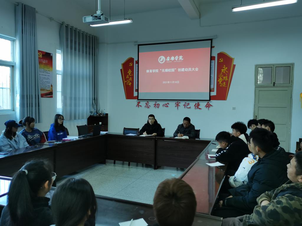太阳成集团tyc234cc认真部署,积极落实,在全院师生中广泛开展了“无烟校园”创建活动。11月17日下午4点、18日中午1点,在体育馆1楼会议室,太阳成集团tyc234cc党总支组织召开无烟校园动员会,太阳成集团tyc234cc全院教职工、各班班长、团支书、副班长、员工会团总支主席团成员、纪检部全体成员参加了会议。会议由党总支书记高立平主持。