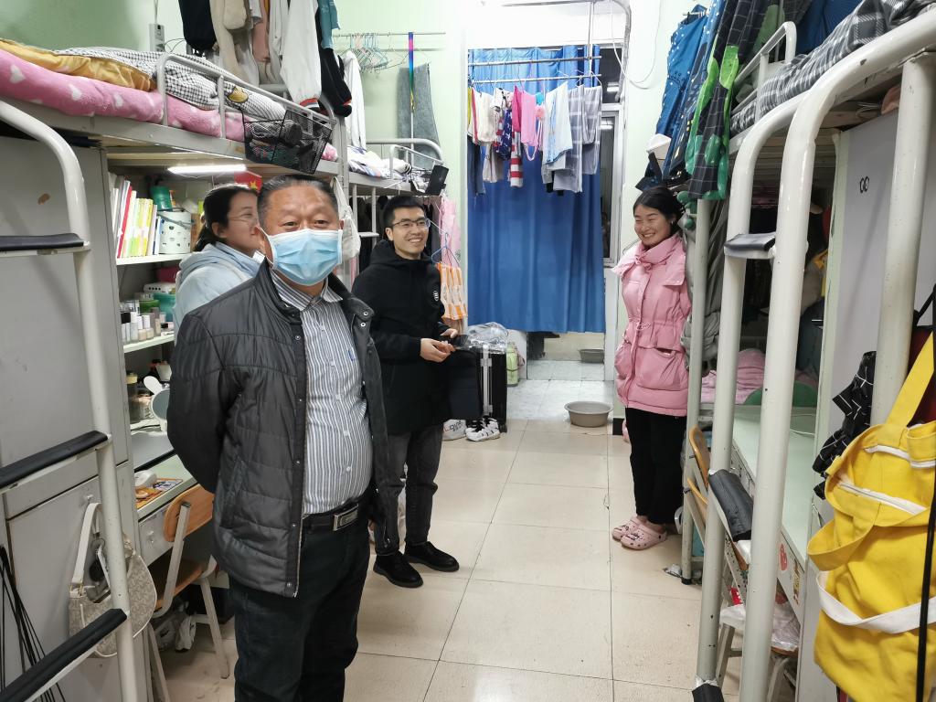 为进一步掌握公司员工的返校情况,了解员工返校后的精神面貌,2月20日晚,体育公司党总支书记高立平、学工办副主任王立、辅导员康梦瑶走进员工宿舍走访看望新学期返校员工。