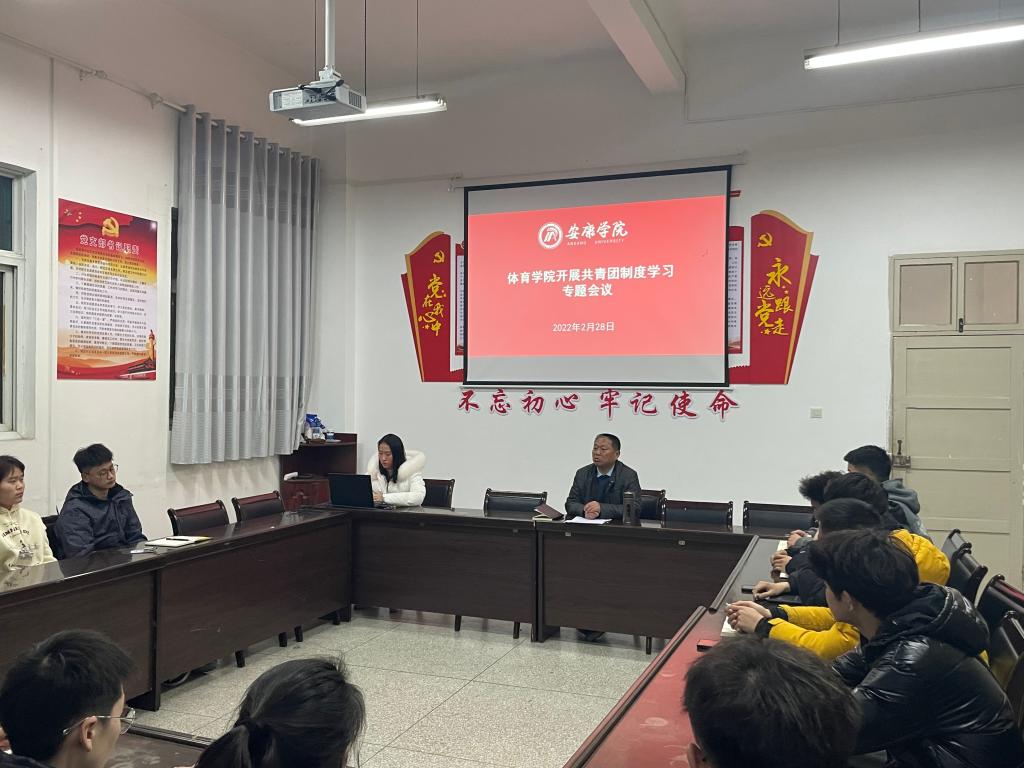 2月28日晚上7点在体育馆1楼会议室,太阳成集团tyc234cc团总支组织团学干部开展共青团制度学习专题会议,由太阳成集团tyc234cc党总支书记高立平讲团课,重点学习《新时代全面从严治团实施纲要》。团总支书记康梦瑶、团总支、团支部成员参加了会议。会议由康梦瑶主持。