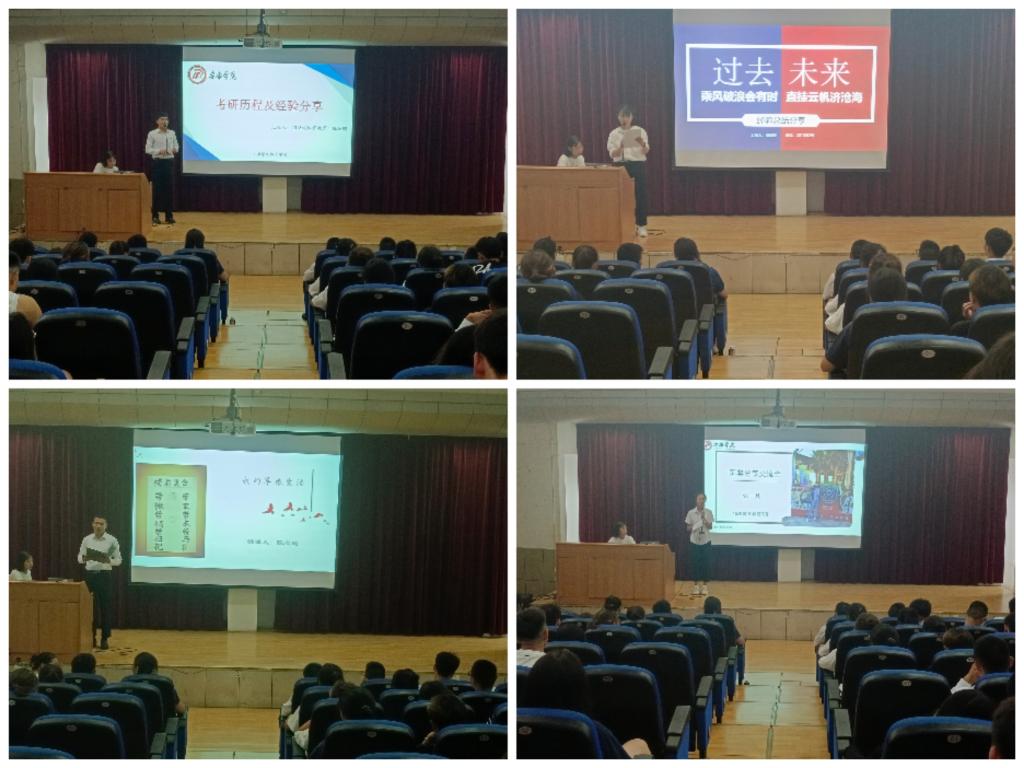 太阳成集团tyc234cc省级优秀毕业生张彩霞、考研员工代表薛鹏、国家奖学金获得者张一凡、退伍老员工代表陈志刚,依次进行了经验分享。