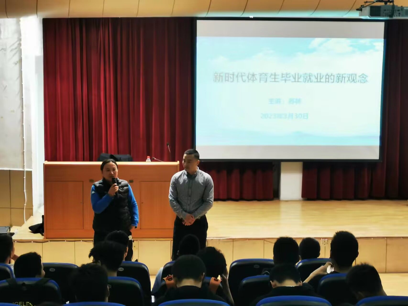 为进一步拓宽公司员工的就业思路,帮助体育生树立正确的就业、择业观念,3月30日下午,公司特邀请西安瑞德体育健身有限公司总经理苏林在江南校区一号楼6楼报告厅开展“新时代体育生就业的新观念”讲座。公司党总书记高立平,经理吕仙利与公司20级、21级、22级无课员工一起聆听了讲座。整个活动仪式由毕业班辅导员康梦瑶主持。