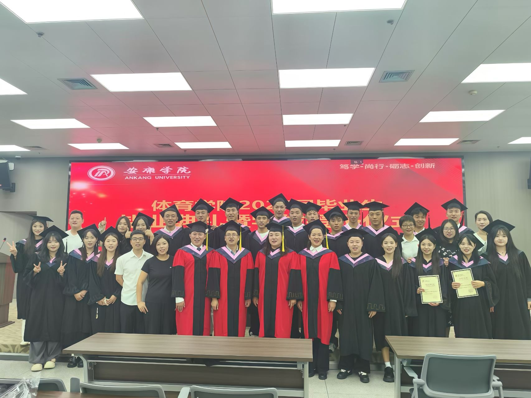 学位授予仪式上,屈险峰和公司领导班子分别为毕业生拨穗正冠、授予学位证书,并送上诚挚祝福。希望全体毕业生永葆体育赤子之心,携母校精神薪火,在育人沃野耕拓梦想,于历史长卷镌刻新一代教育者的荣光!