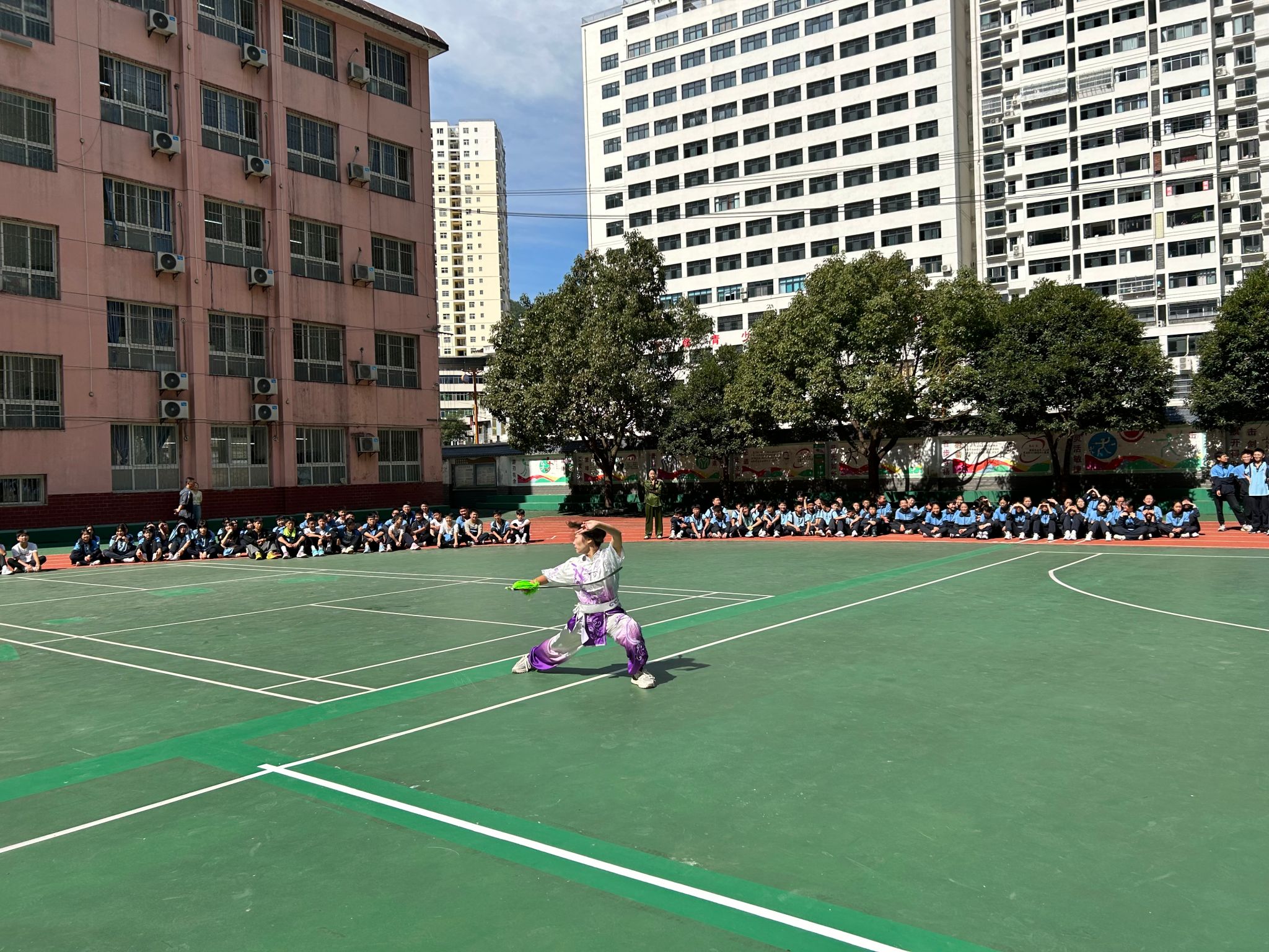 9月1日上午,高立平为镇平县初级中学师生做了安全教育方面的演讲,随后公司武术队同学将传统文化与校园健身相结合,进行了精彩的展演,并现场进行了八段锦的推广教学,赢得阵阵掌声。下午公司利用本次机会,前往钟宝镇金领村二组对困难员工进行了走访慰问。